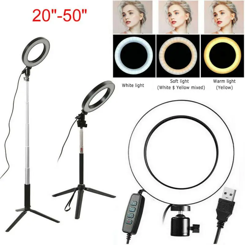 Кольцевой светильник для студийной фотосъемки с регулируемой яркостью, 5500K, светодиодный светильник, адаптер для телефона, для нанесения макияжа, прямых трансляций, видео со штативом
