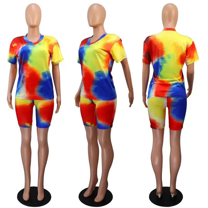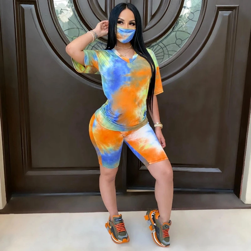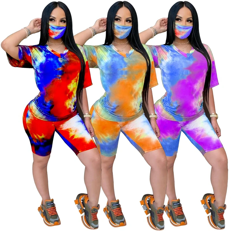 Женский Повседневный комплект из двух предметов, топ и велосипедные шорты с завязками, летний комплект из 2 предметов, 2021