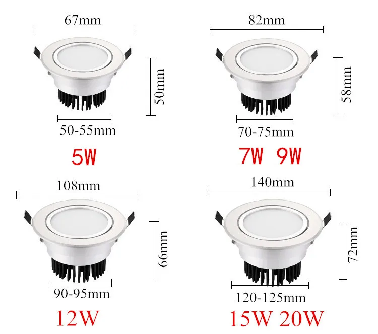Светодиодный точечный светильник COB с регулируемой яркостью, потолочный светильник AC85-265V, 5w7w9w12w1, 5 Вт, алюминиевый встраиваемый потолочный светильник, круглый светодиодный панельный светильник, внутренний светильник