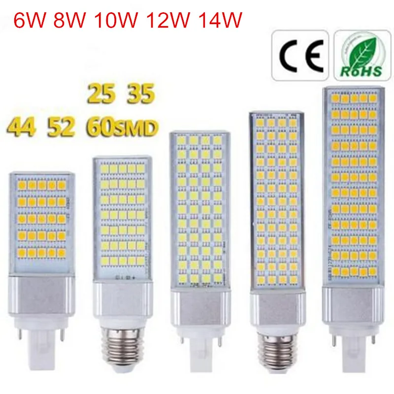 Светодиодная лампочка G24, 6 Вт, 8 Вт, 10 Вт, 12 Вт, 14 Вт, E27, лампочка для освещения, светодиодная лампочка G24 с горизонтальным разъемом, точесветильник светильник