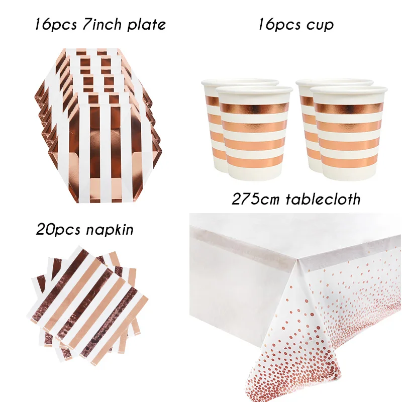 Одноразовая посуда для вечерние, бумажный набор из розового золота,...