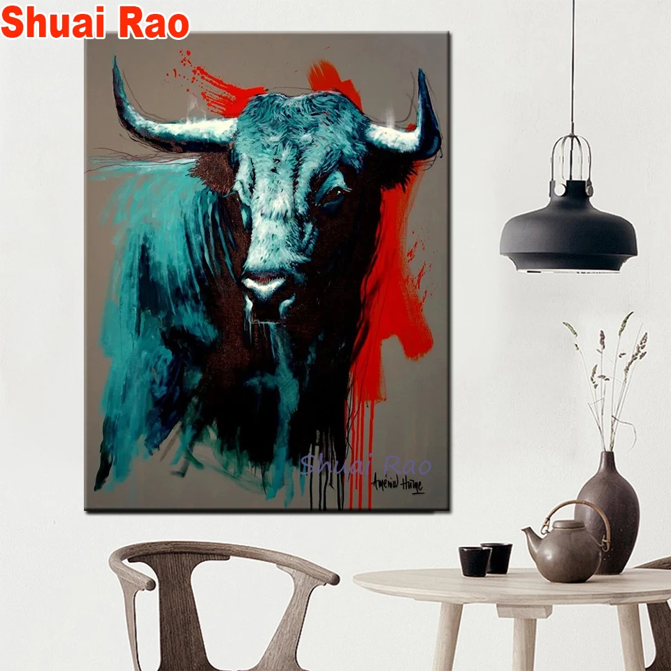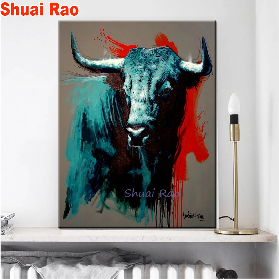 5d алмазная картина вышивка бык 3d diy ручная работа, 5d стразы, корова животное домашний декор, вышивка крестиком,