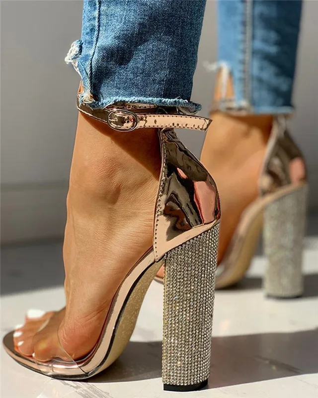 Пикантные женские туфли-лодочки на высоком каблуке; Золотые стразы на каблуке; Классические туфли-лодочки; Размера плюс 35-43; Женские сандалии с ремешком и пряжкой