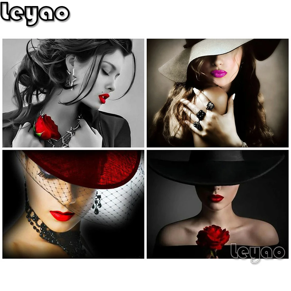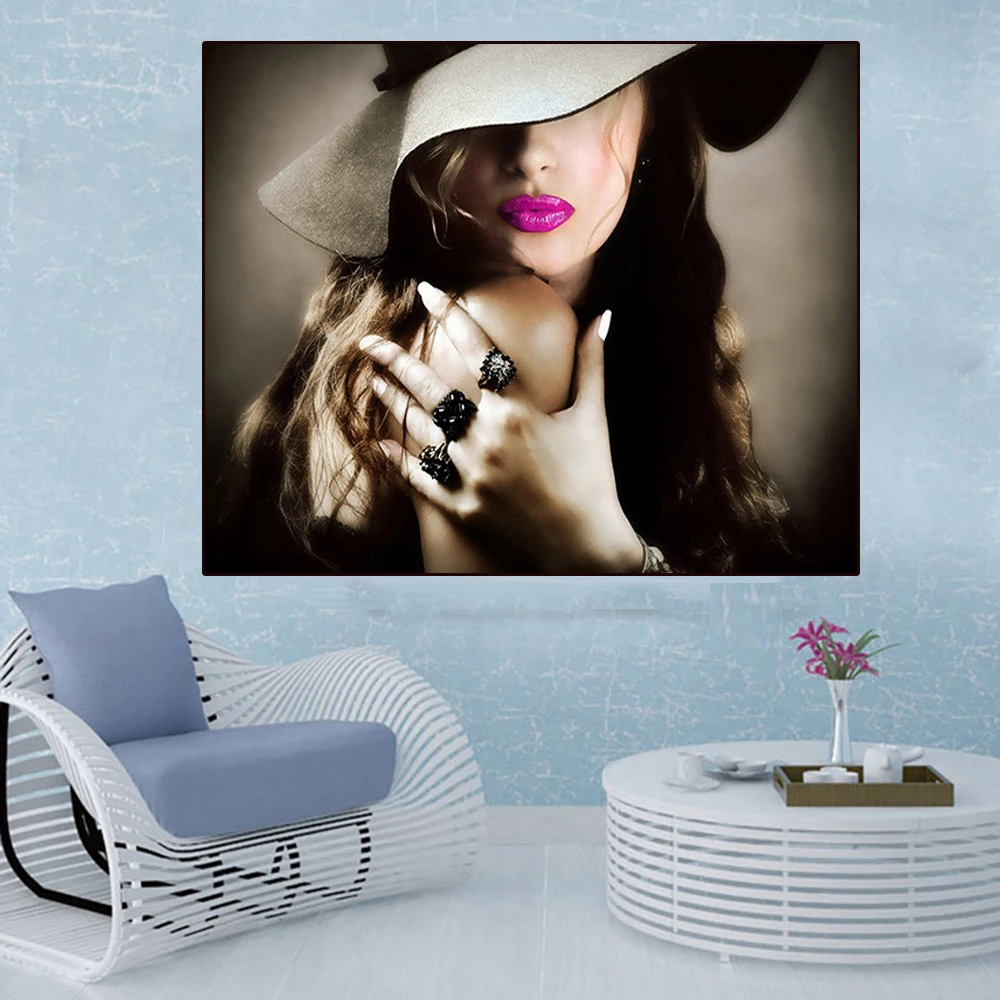 5D круглый алмаз живопись Леди Полный дрель квадратный портрет "женщина в шляпе" картина Стразы Мозаика Бусины-бриллианты вышивка