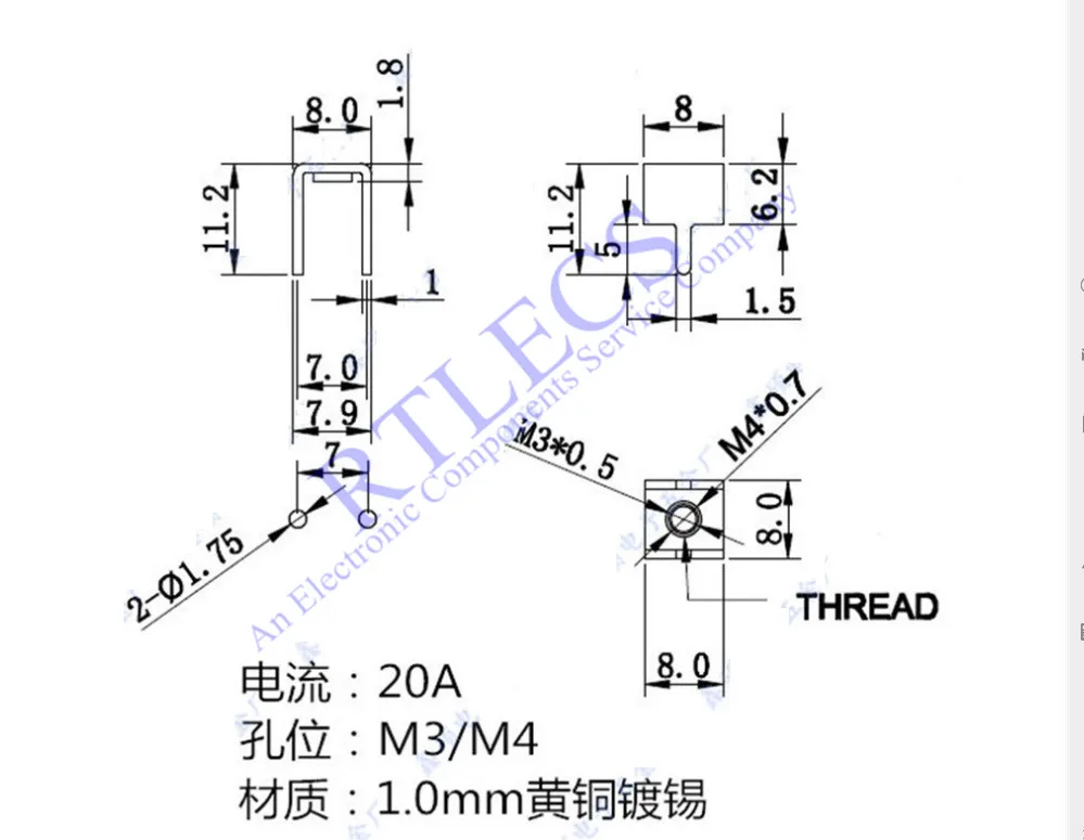 20 шт., метрические Винтовые клеммы для сварки M4 M3, 2 штырька, шаг сквозного отверстия 7,0 мм, прямая плата высокого тока 20 А, латунная Олово