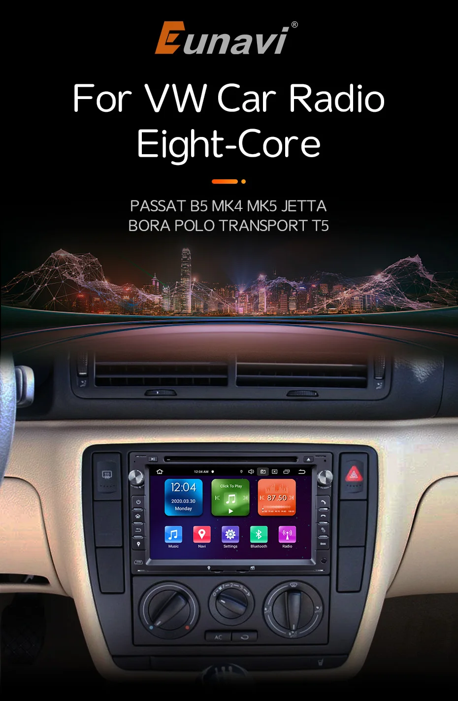 Автомагнитола Eunavi, 2 Din, Android 10, DVD, GPS, для VW PASSAT B5 B4 JETTA BORA GOLF 4 SHARAN POLO MK5 MK4 MK3 T5, транспортер DSP