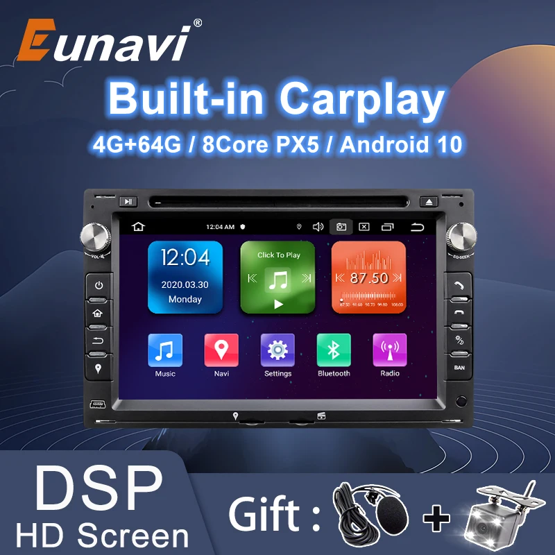 Автомагнитола Eunavi, 2 Din, Android 10, DVD, GPS, для VW MK5, MK4,...