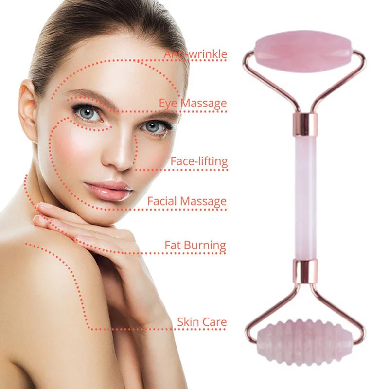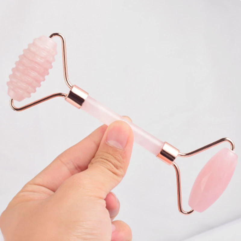 Новый розовый КВАРЦЕВЫЙ ролик для лица розовый кристалл нефритовый ролик нефритовый массажер для лица с шипами против морщин уход за кожей массажный ролик