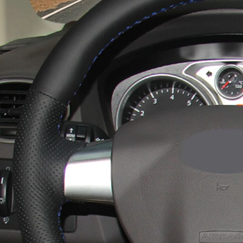 Чехол на руль HKOADE, прошитый вручную черный чехол на руль из искусственной кожи для Ford Focus 2 2011 2010 2009 2008 2007 2006 2005 (3 Спицы)