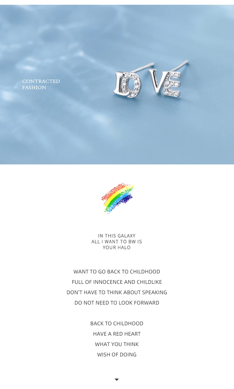 MODIAN романтическое письмо LoveAsymmetry серьги-гвоздики в виде капель с кристаллами в форме Для женщин 925 пробы серебро Простой уха булавки, хорошее ювелирное изделие, подарок на день Святого Валентина