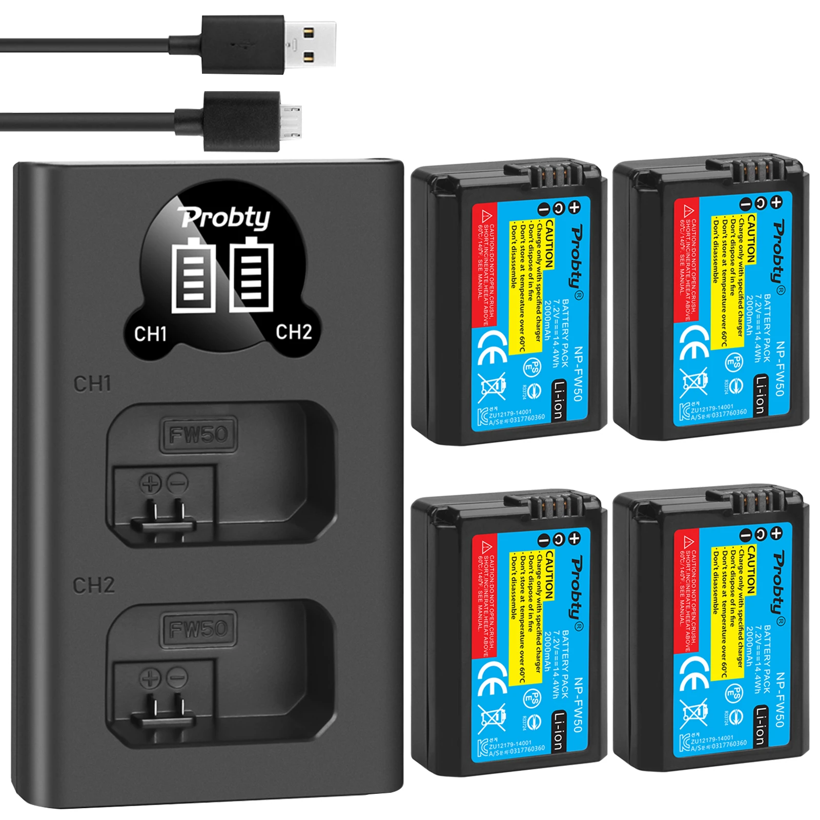 4 шт. 2000 мАч NP-FW50 NP FW50 батарея + LED USB двойное зарядное у...