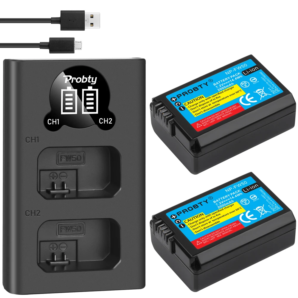 3 шт. PROBTY 2000 мАч NP-FW50 NP FW50 камера батарея для Sony a5100...