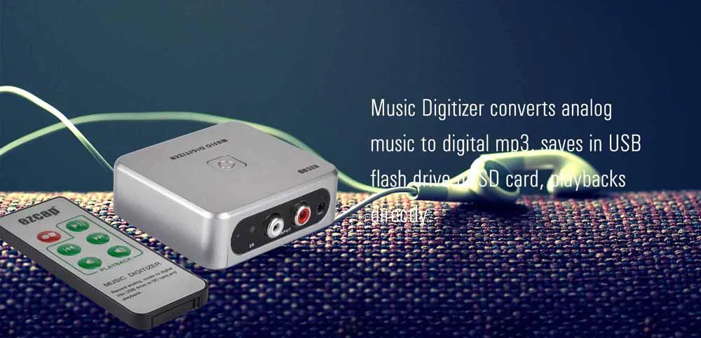 Слушайте записанную музыку напрямуюEzcap241 музыкальный Дигитайзер включает Пульт дистанционного управления, вы можете подключить линию выхода устройства к акустической системе и воспроизводить музыку, которую вы только что записали, с помощью пульта дистанционного управления.