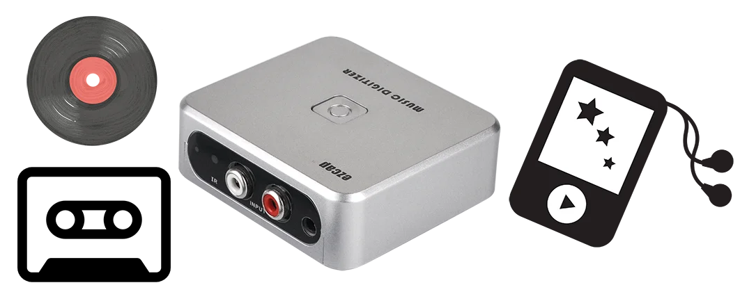 Преобразование Музыкальные Записи LPs в цифровой MP3Ezcap241 музыкальный дигитайзер Преобразует старые Музыкальные Записи, LPs и все аналоговые аудио в цифровые mp3. У него есть два варианта стереоаудиовхода-левый и правый стереоаудиовход RCA и стереоаудиовход 3,5 мм.