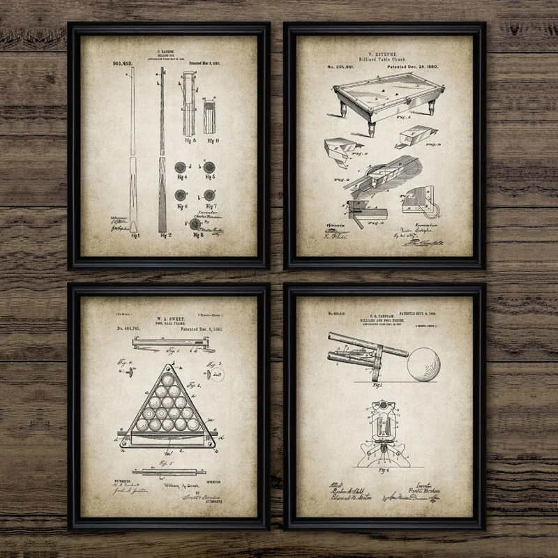 Винтажные постеры и принты для бильярда, бильярдного стола