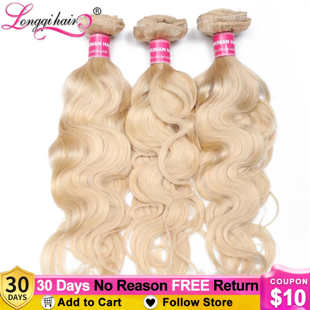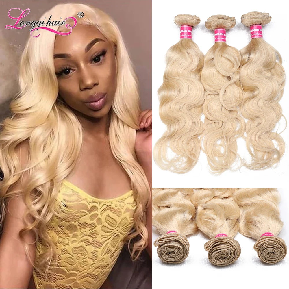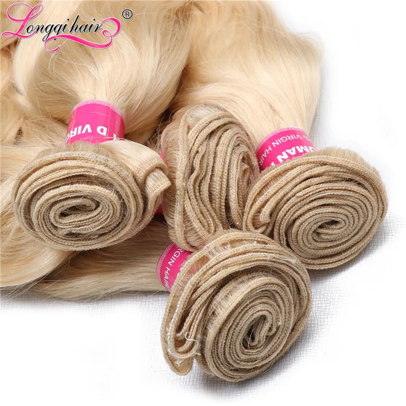 Волосы Longqi #613 медовая Блондинка Бразильская волна 3 4 пряди сделки Remy 100% человеческие волосы 16-24 дюйма поставщик волос Бесплатная доставка