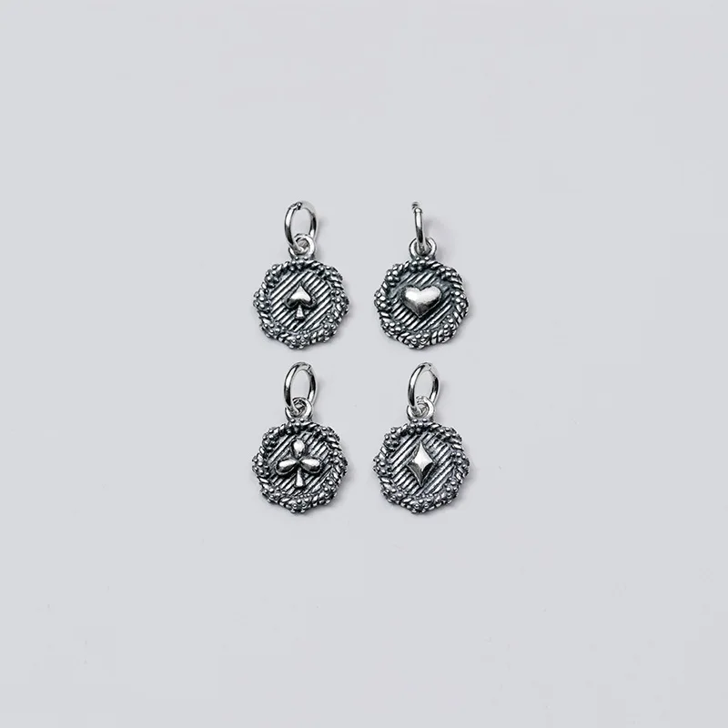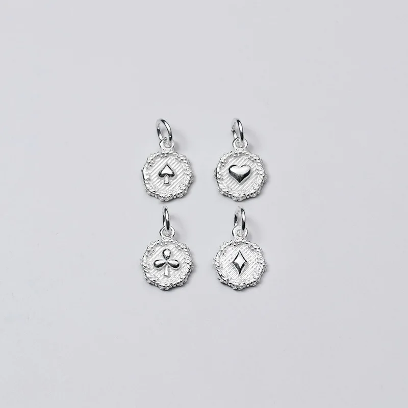 Подвески Круглые из серебра 925 пробы с узором в виде покера, 13 мм
