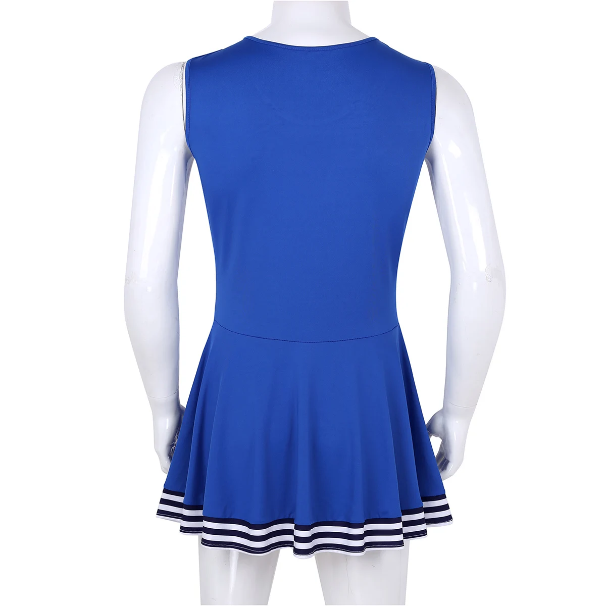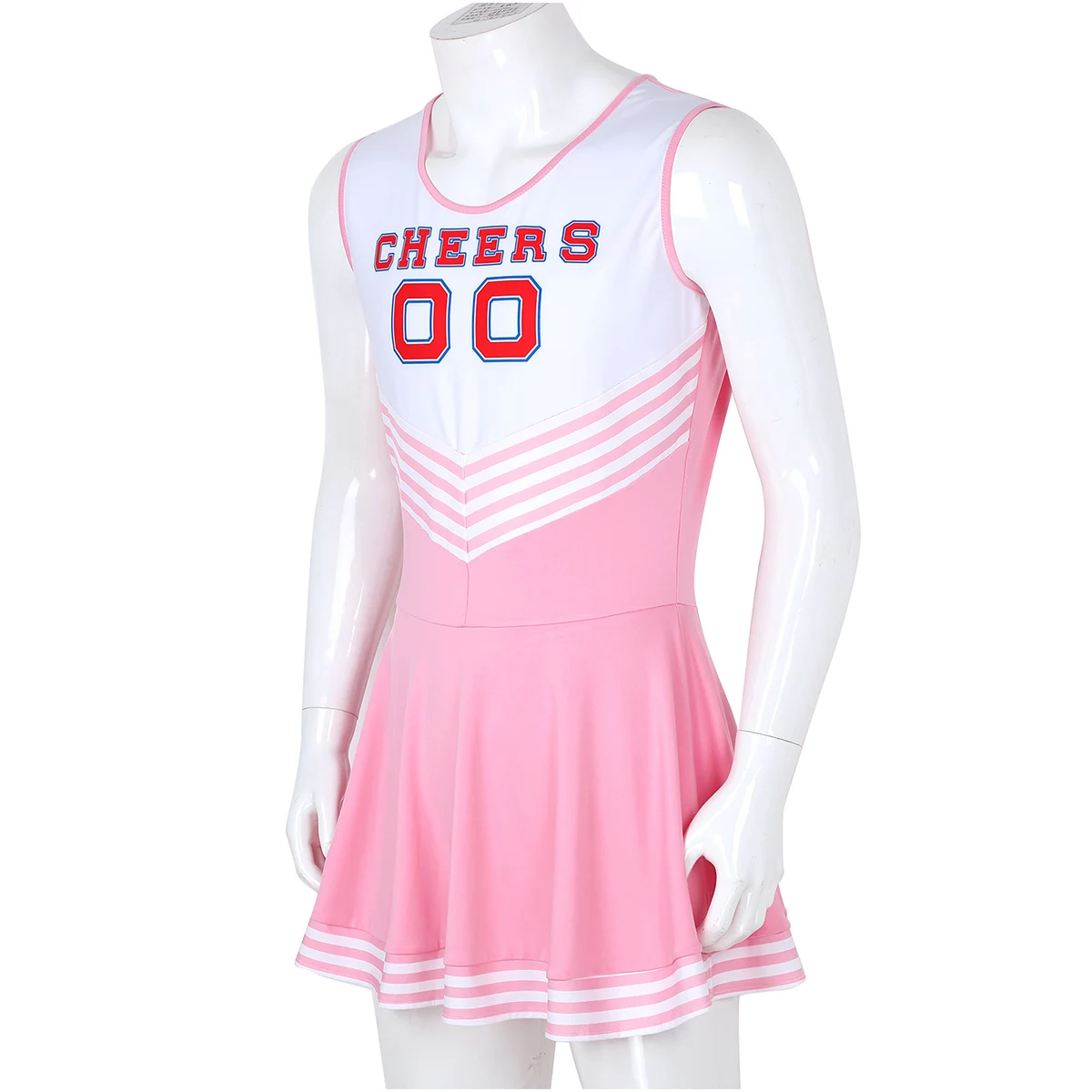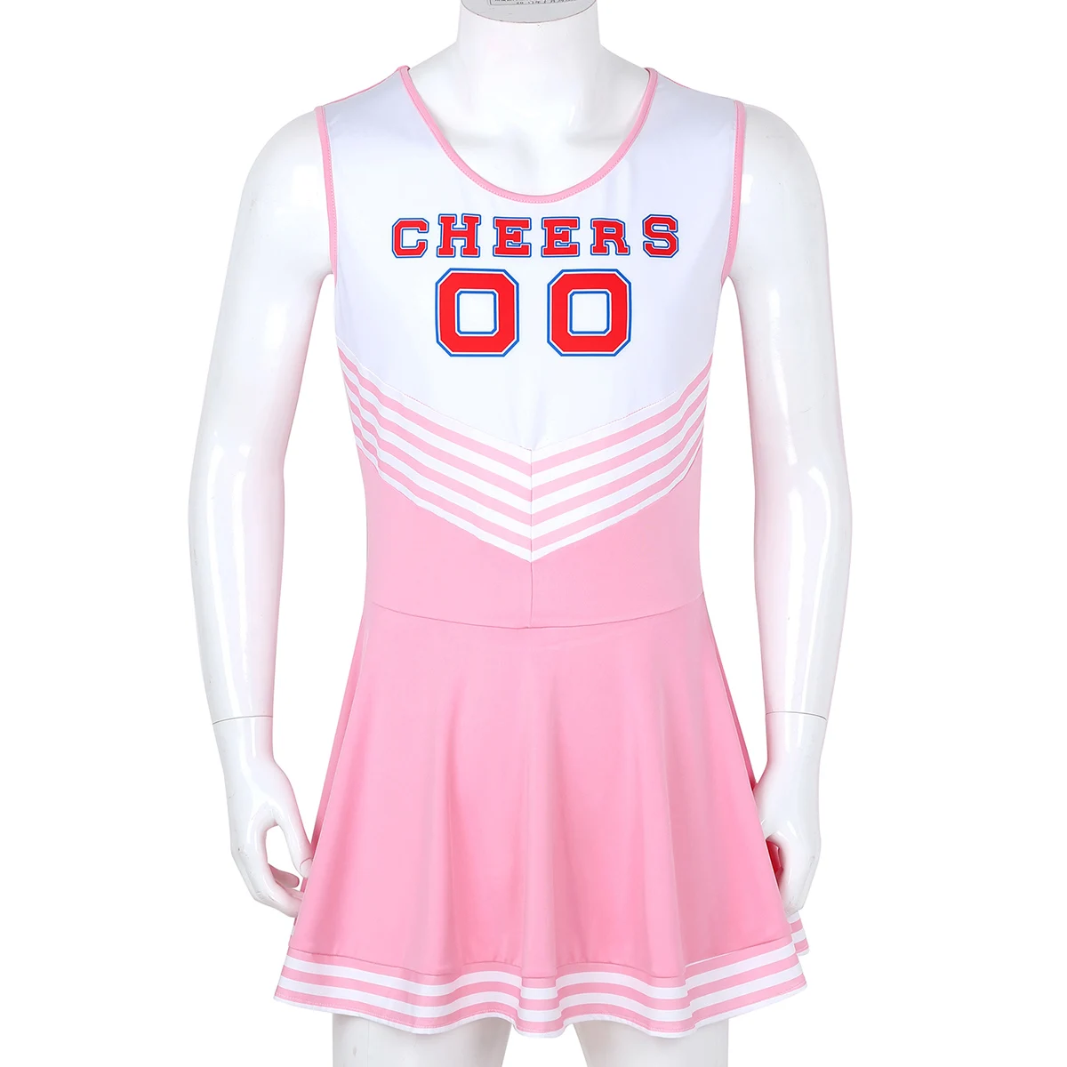 Особенности: Мужской маскарадный костюм для Чирлидера sissy, с застежкой-молнией. Без рукавов и с глубоким вырезом, с надписью «CHEERS 00» спереди, в полоску на талии и внизу платья. Плиссированное Платье длиной выше колена. Изготовлен из эластичной ткани, мягкий и удобный в носке. Идеально подходит для косплея костюма, сна, романтической ночи, свадебной ночи, Дня Святого Валентина и т. д. Пожалуйста, обратитесь к описанию продукта для получения подробной информации о размере. Ручная стирка в холодной воде.