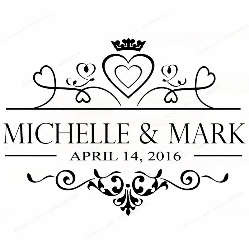Пользовательские имена Love Наклейка на стену в виде сердца съемные...