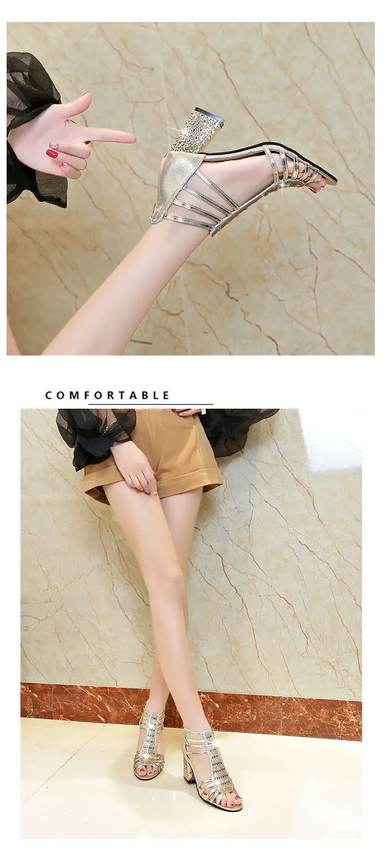 Босоножки женские на квадратном каблуке, элегантные удобные туфли н...