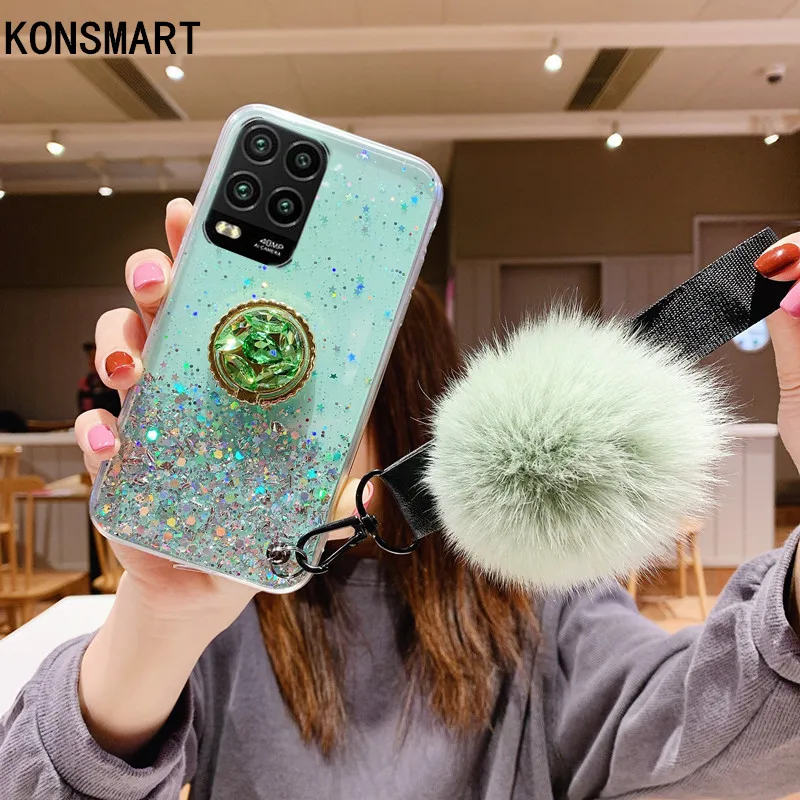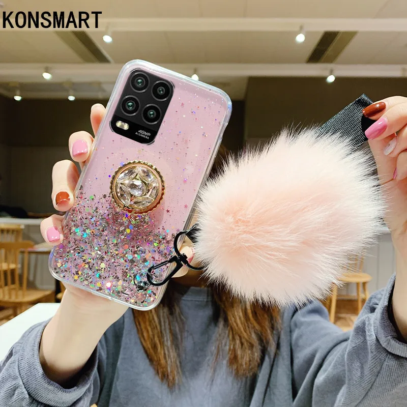 KONSMART милый чехол для телефона с помпоном для Xiaomi Mi 10 Lite, блестящая Звезда, прозрачный мягкий чехол-подставка для Xiami Mi 10 lite