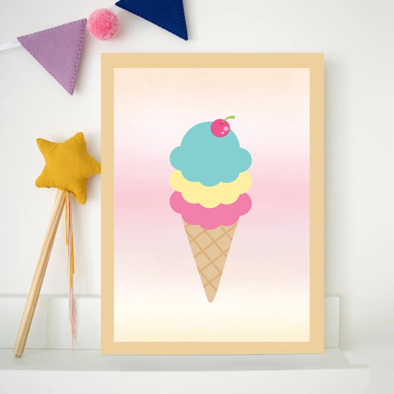 Картина из мороженого на холсте, декор для детской комнаты, милый мультяшный постер с десертом, мороженым, картина в скандинавском стиле, настенное украшение для детской комнаты