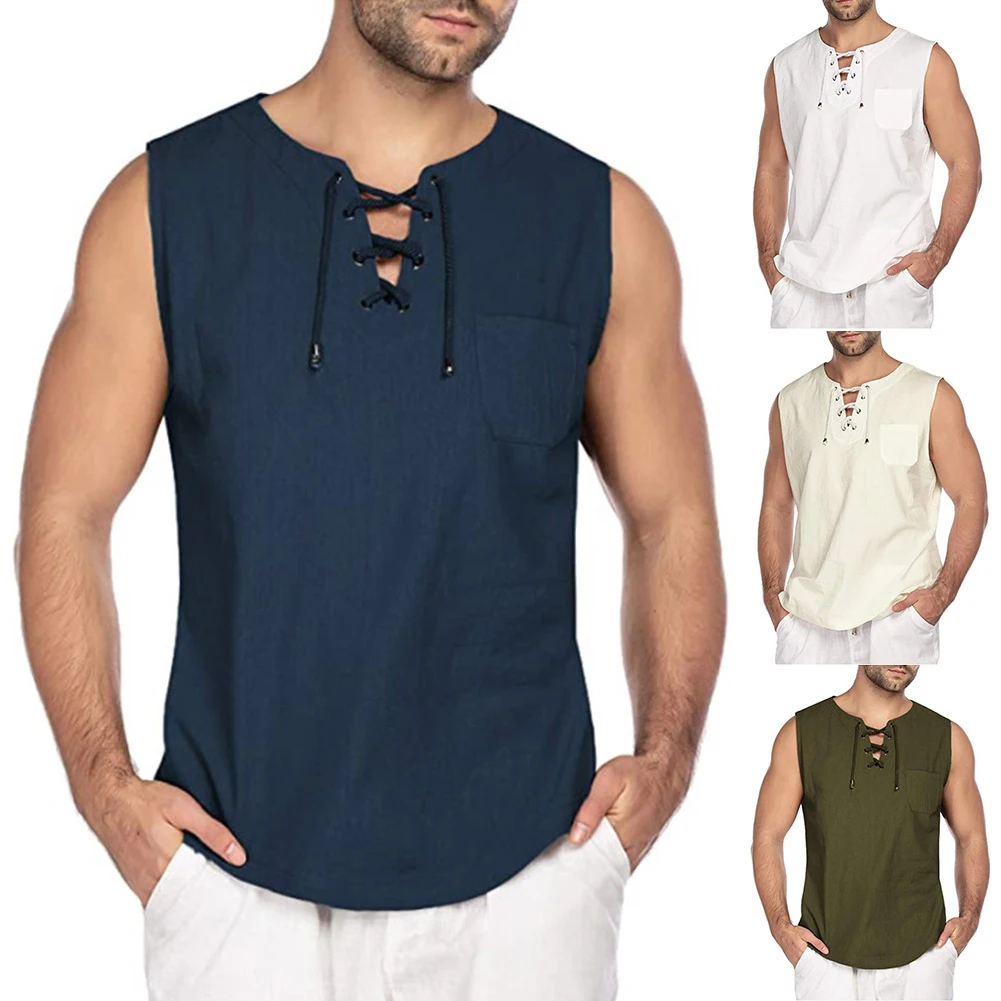Майка мужская повседневная, однотонная безрукавка, бандажный жилет с V-образным вырезом и карманами, летняя одежда