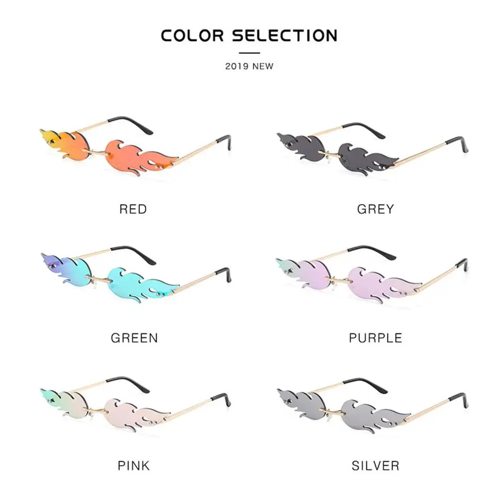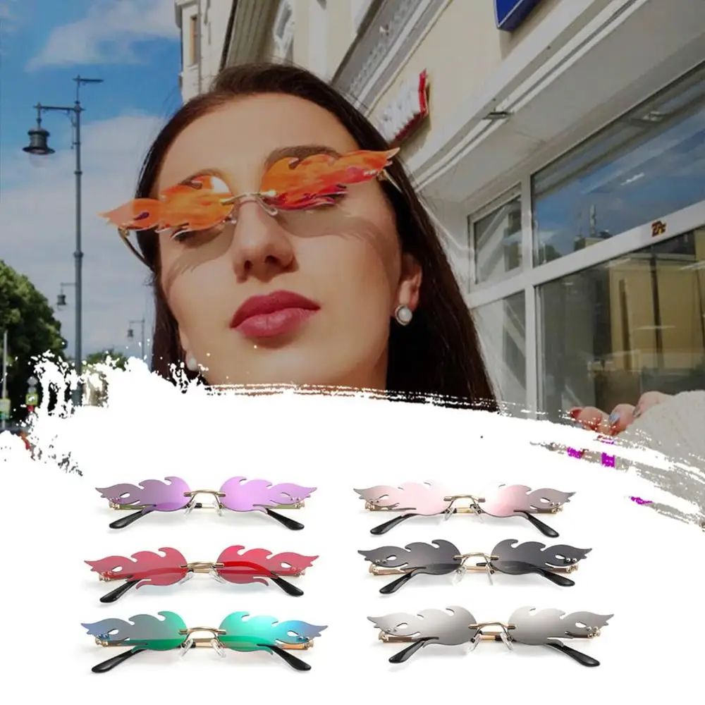 Забавные солнечные очки без оправы с огненным пламенем, женские вол...