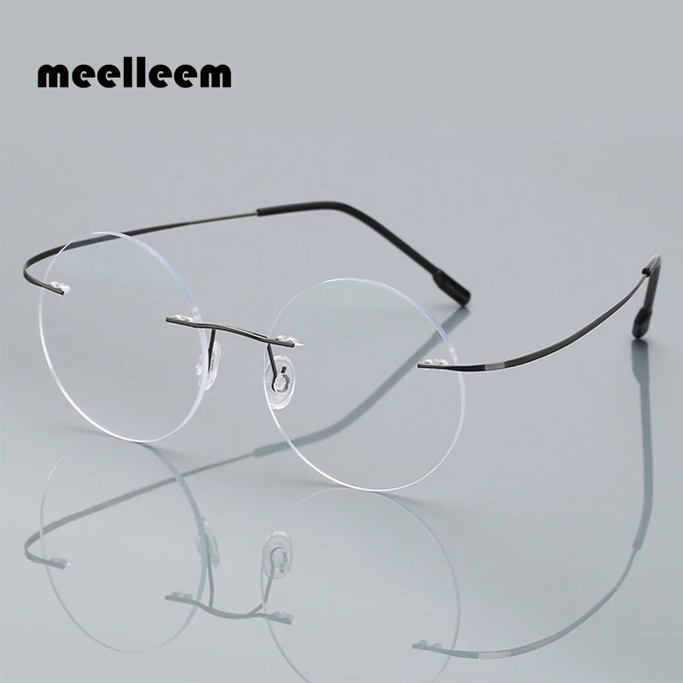 Очки для чтения мужские, женские, мужские, круглые, без оправы, с защитой от синего света, из титанового сплава, для коррекции дальнозоркости, + 1,50, + 2,00, + 2,50