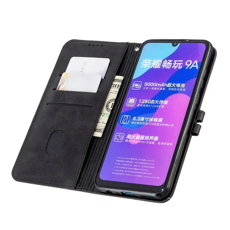 Чехол-книжка для Huawei Honor 9A, кожаный, с отделением-бумажником