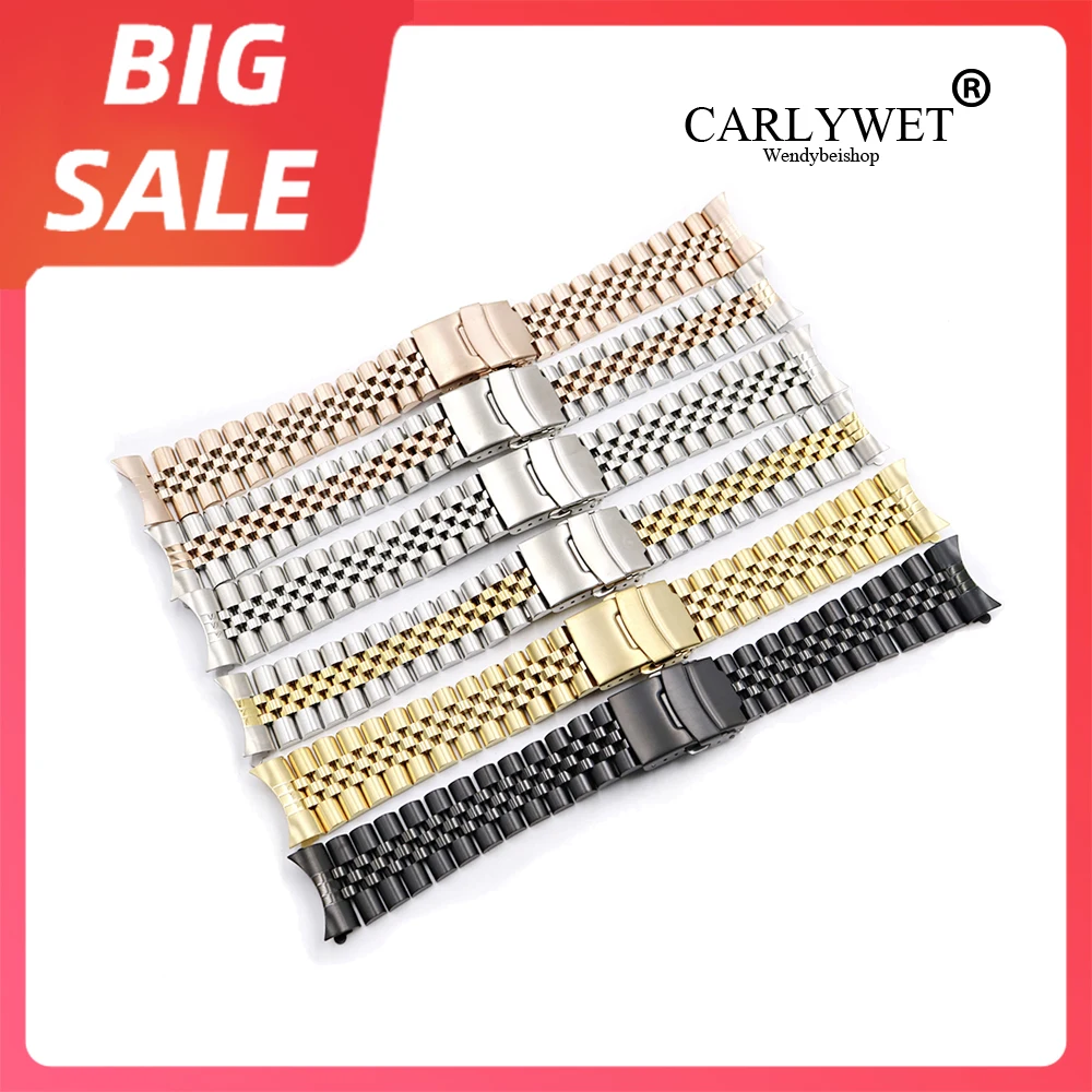 Ремешок для часов CARLYWET 19, 20, 22 мм, с полым изогнутым концом, сплошной винт с заменой звеньев, браслет для Rolex, Datejust, Submariner, Seiko