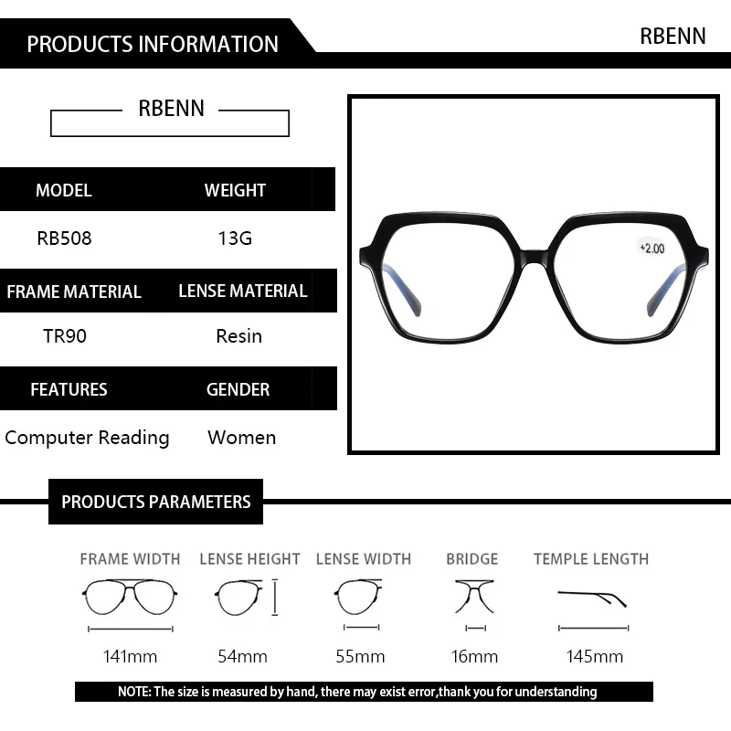 RBENN 2021 Новые квадратные женские компьютерные очки для чтения с ...