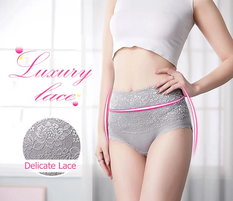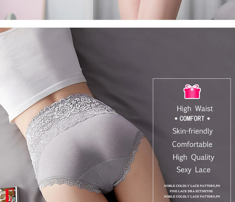Трусики женские хлопковые бесшовные, с высокой талией, кружевные трусы-плавки