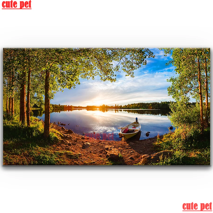 Большая алмазная живопись сделай сам, леса, лодки, реки, вечерние сарафаны, 5d полноразмерная мозаика, вышивка крестиком, декоративный пазл