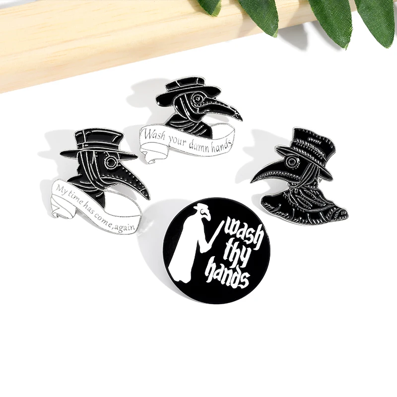Готическая маска ворона металлическая брошь с эмалью, Вымойте руки, вирусный значок, креативный лацкан, рюкзак, ювелирные изделия, подарок для друзей