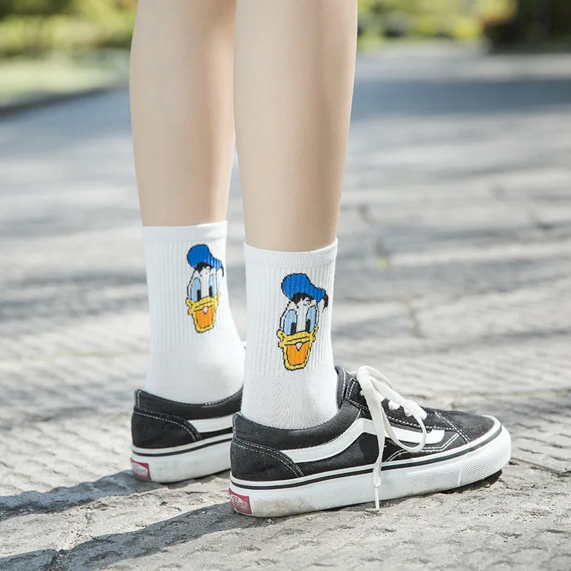 Носки женские хлопковые осенне-зимние с рисунком Дональда Дака и Микки-Мауса