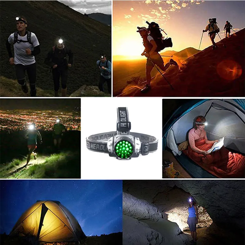 Налобный фонарь, 21 светодиод, 4 режима, с аккумулятором 18650, зеленый, для рыбалки, кемпинга, охоты
