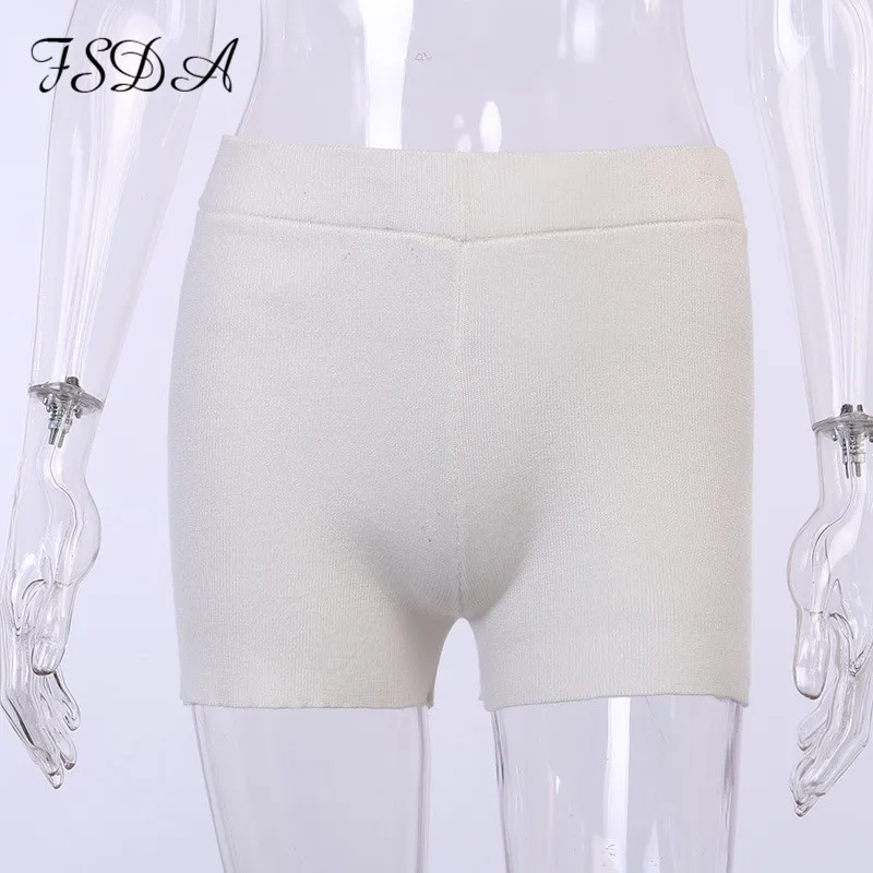 Шорты женские трикотажные, хлопковые, с высокой талией, белые, летние, 2020
