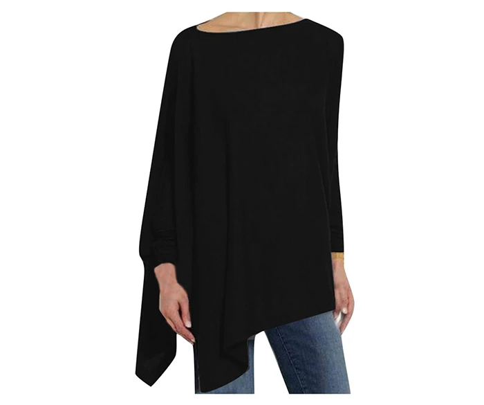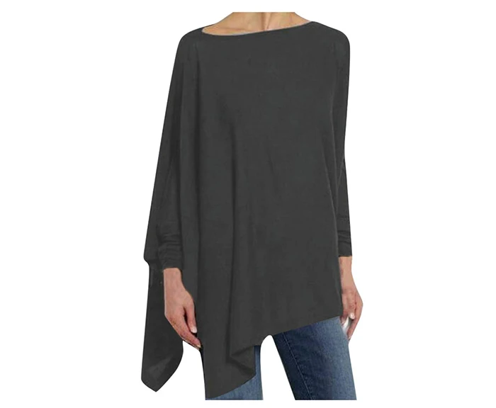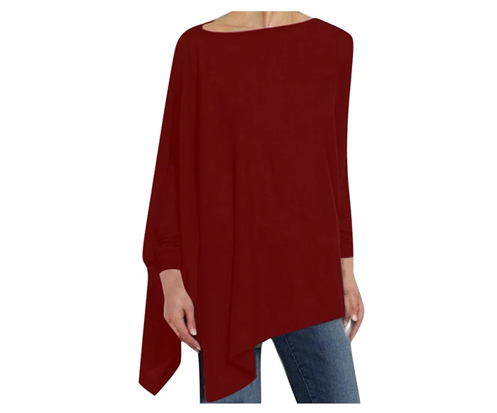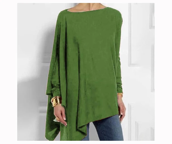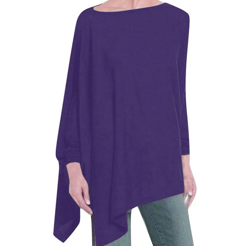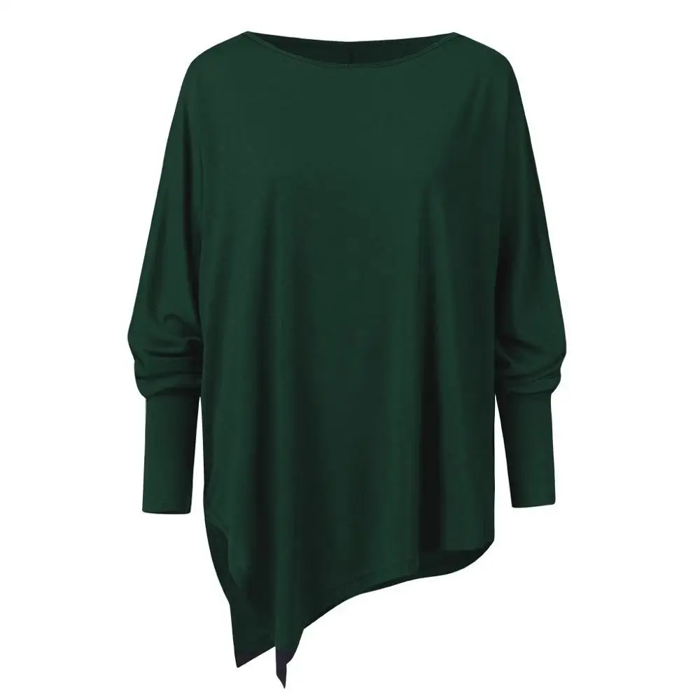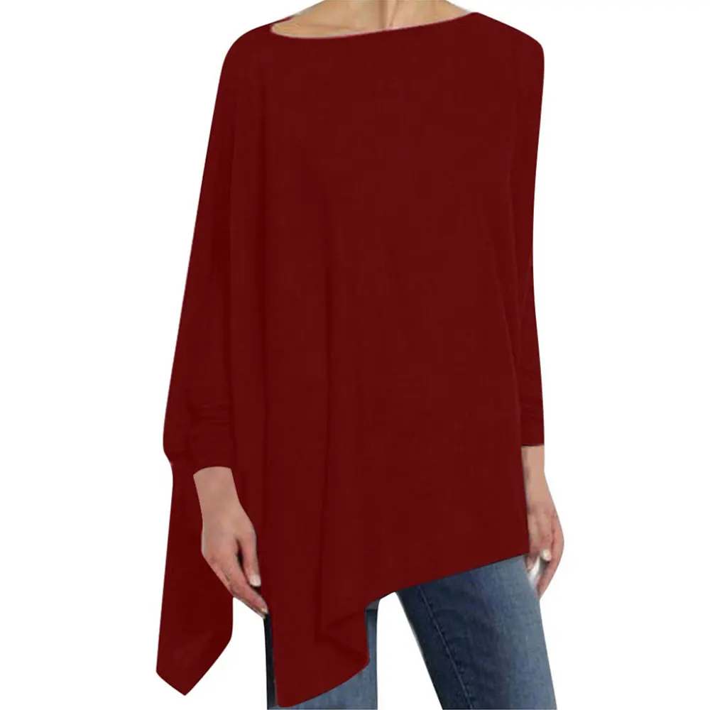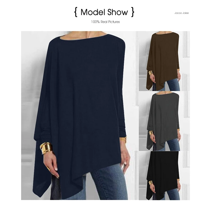 Блузка Jocoo Jolee Женская хлопковая Асимметричная, Повседневная Свободная рубашка с круглым вырезом и длинным рукавом, однотонный свитшот, однотонный пуловер