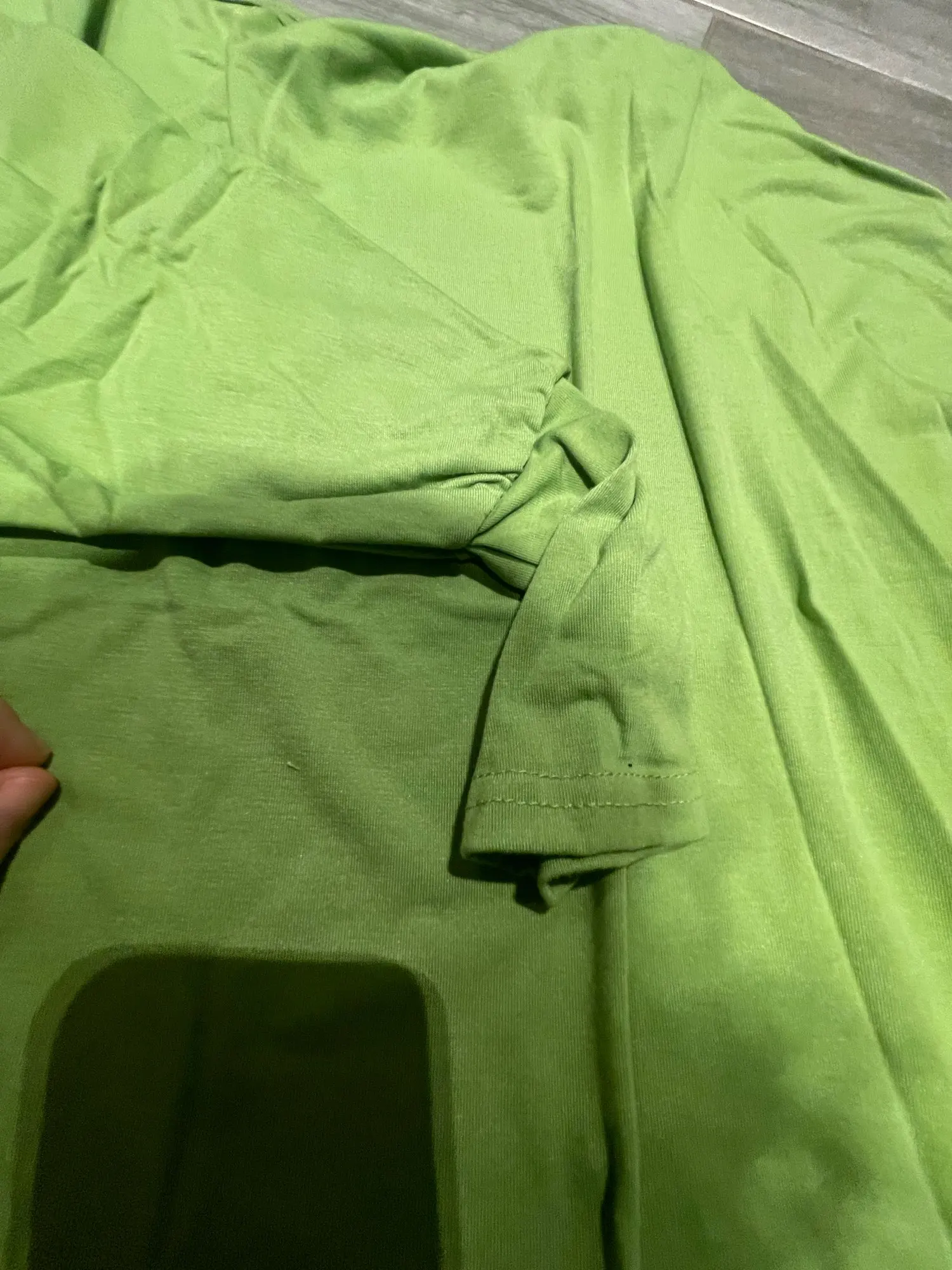 На самом деле зеленый цвет ярче, чем на картинке. Качество посредственное, с некоторыми свободными нитями.