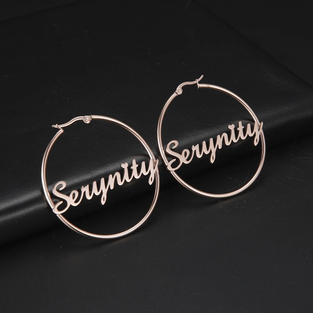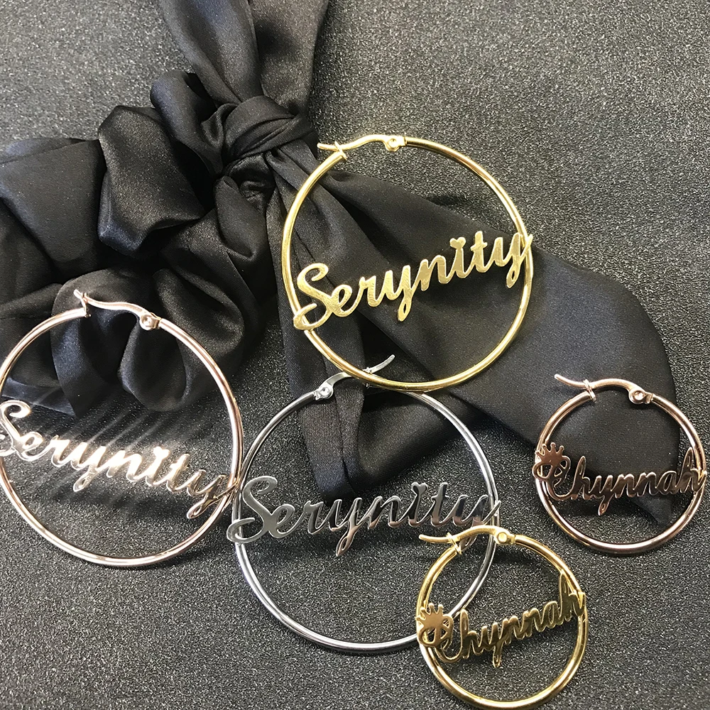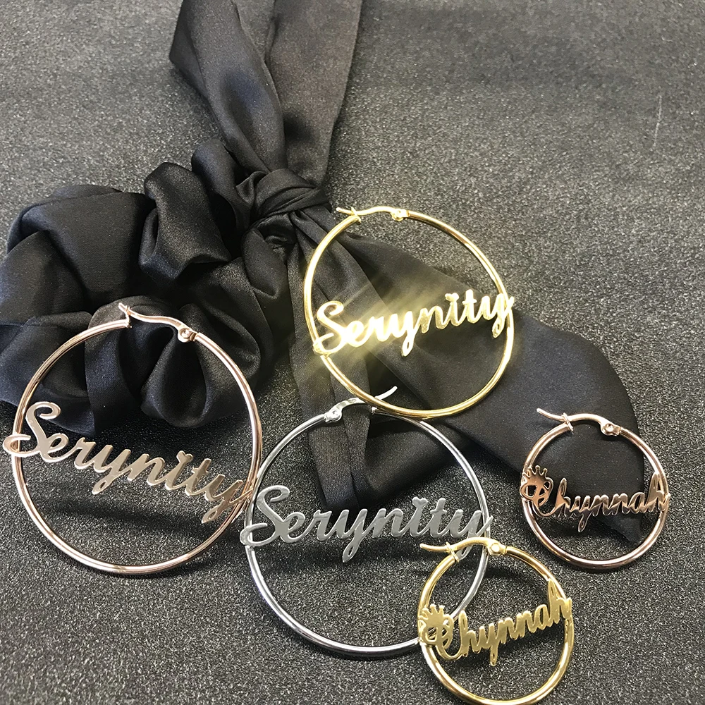 Sipuris из нержавеющей стали на заказ по индивидуальному заказу название обруч серьги для женщин, ювелирные изделия для женщин девочек круг серьги Модные 30-60 мм
