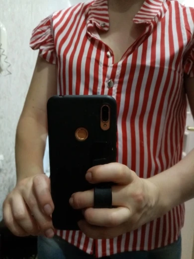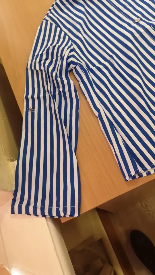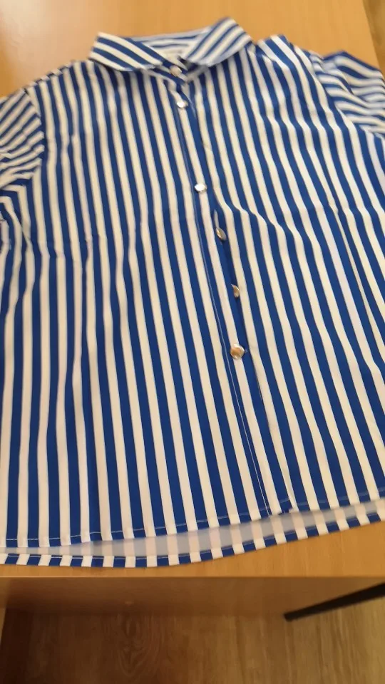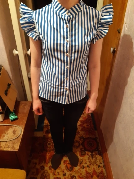 Ооочень свободная блузка типа оверсайз на мне. Я ношу размер М (44-46), заказала S, но рубашка очень широкая, рукава так не закатываются, как показано на рисунке))) И если я расстегну блузку, как на картинке, то это будет разврат))) Но пришло всё быстро)