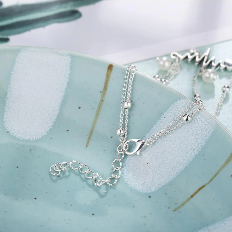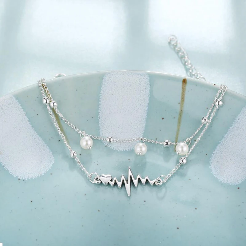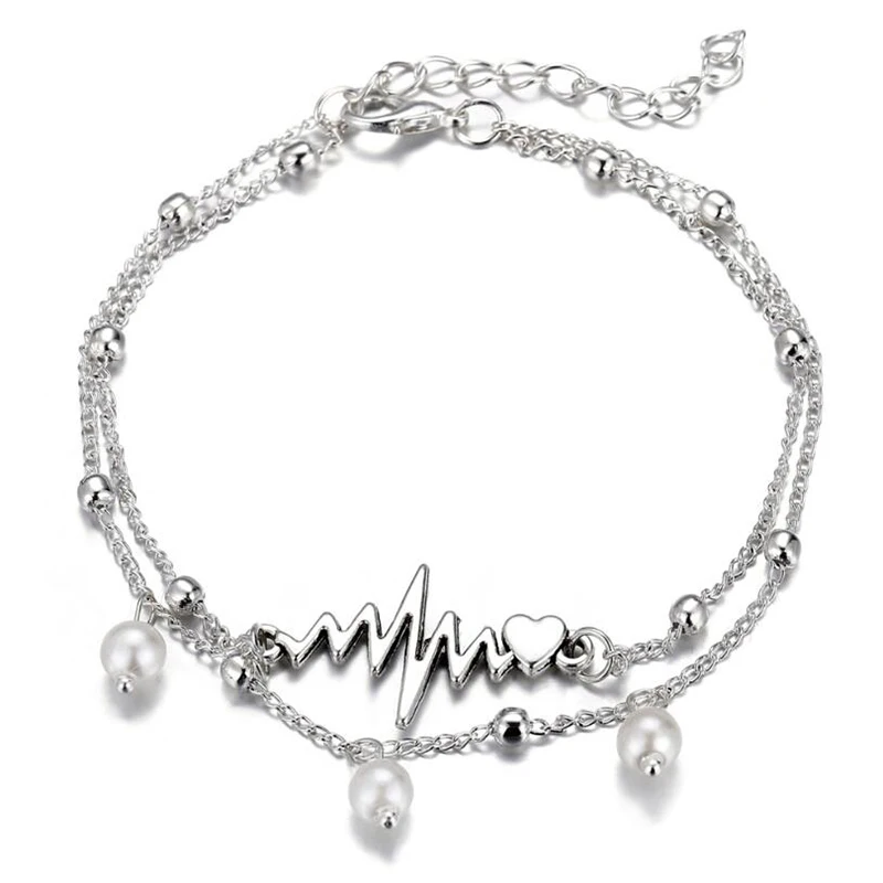 Модный браслет на ногу с изображением пульса, браслеты на лодыжку, браслеты на ногу с имитацией жемчуга в форме сердца, женские летние Богемские ювелирные изделия, подарок
