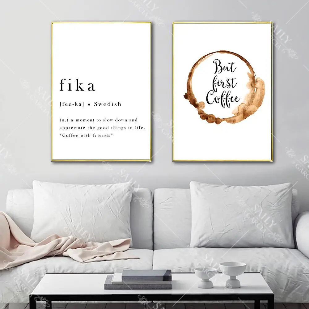 Вдохновляющие плакаты Fika шведские цитаты настенное искусство холст живопись Современные плакаты и принты скандинавские картины декор для спальни