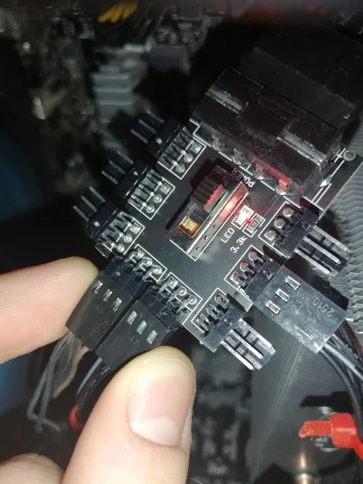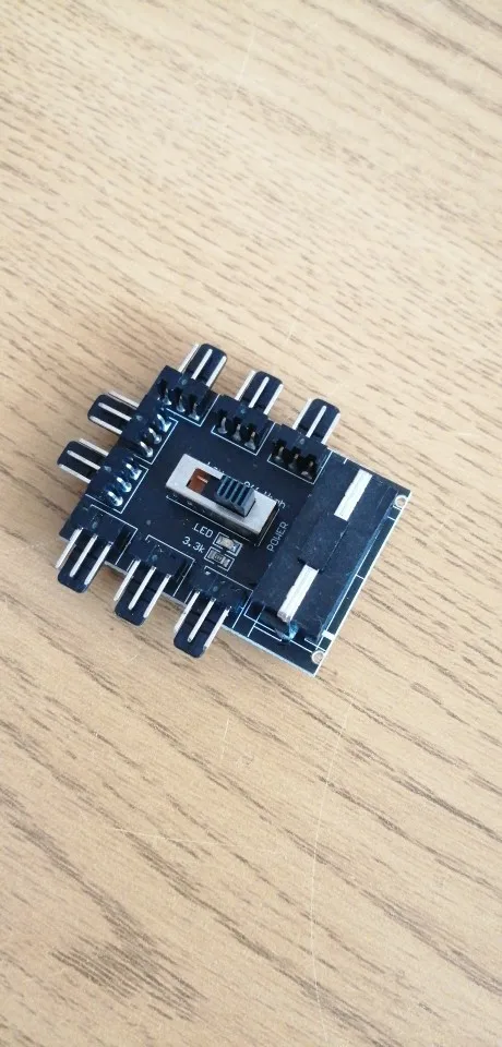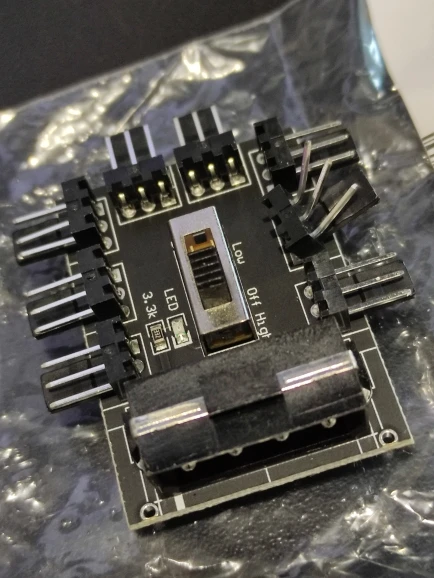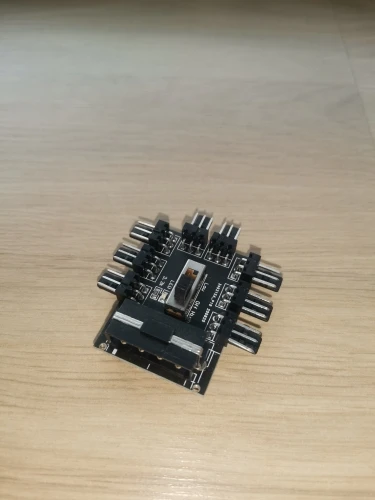 Все работает нормально, подключил от него 5 кулеров и подсветку корпуса, есть переключатель на 3 режима работы, сзади есть самоклеящийся скотч, его можно приклеить на корпус держится надёжно.
