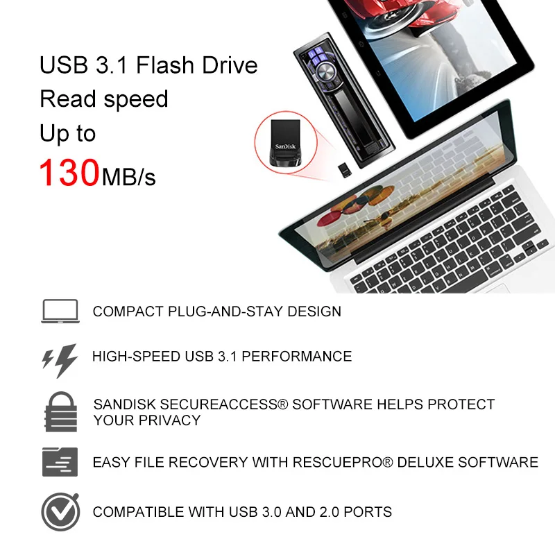 SanDisk usb флеш-накопители 128 ГБ CZ430 мини usb накопитель USB 3,1 до 130 МБс.с 16 ГБ 32 ГБ 64 Гб 256 ГБ u-диск с адаптером MicroUSB TypeC