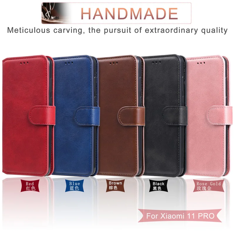Чехол для Mi 11T PRO, кожаный чехол-книжка в стиле ретро с полным п...