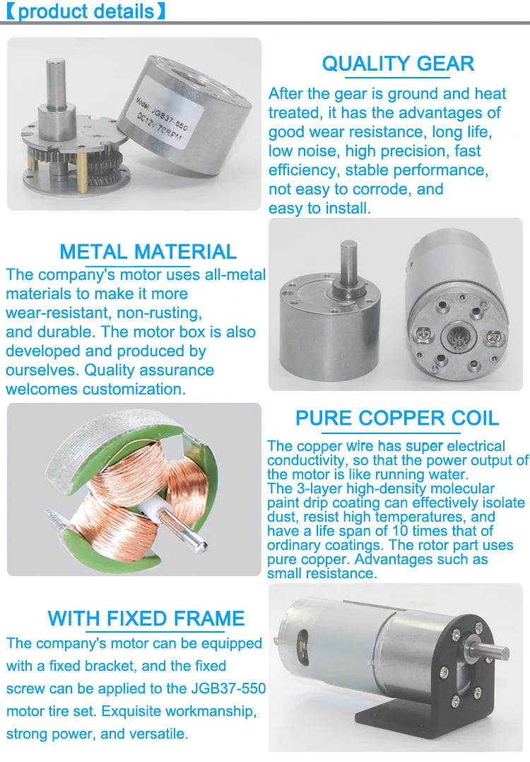 1) перед покупкой, у нас есть напоминание, пожалуйста, внимательно проверьте следующую таблицу параметров, вы можете увидеть Номинальный крутящий момент нагрузки и крутящий момент, если вы выбираете одну из скоростей, нагрузка вашего проекта не может превышать номинальную нагрузку, в противном случае ток двигателя увеличится, Рабочая температура двигателя увеличивается, через некоторое время Шестерня будет изношена, линия будет повреждена, двигатель будет поврежден, не может продолжать работать. Например, если нагрузка вашего проекта составляет 27 кг, мы предлагаем 12 в 18 об/мин (номинальный крутящий момент 28 кг. См), не 12v 28 об/мин (номинальный крутящий момент 26 кг. См).