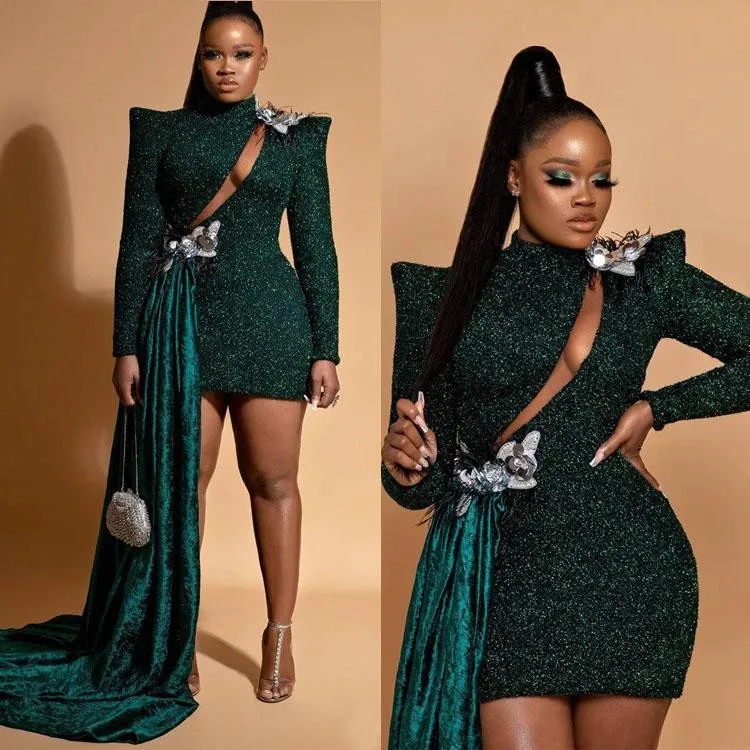 Африканские Выпускные платья с длинными рукавами и аппликациями, короткое вечернее платье с высоким воротником и блестками, короткое формальное короткое коктейльное мини-платье