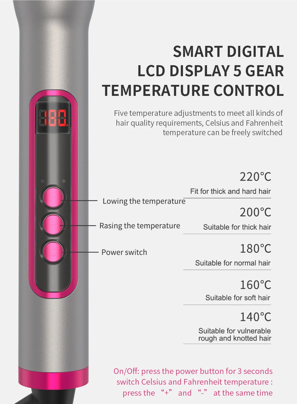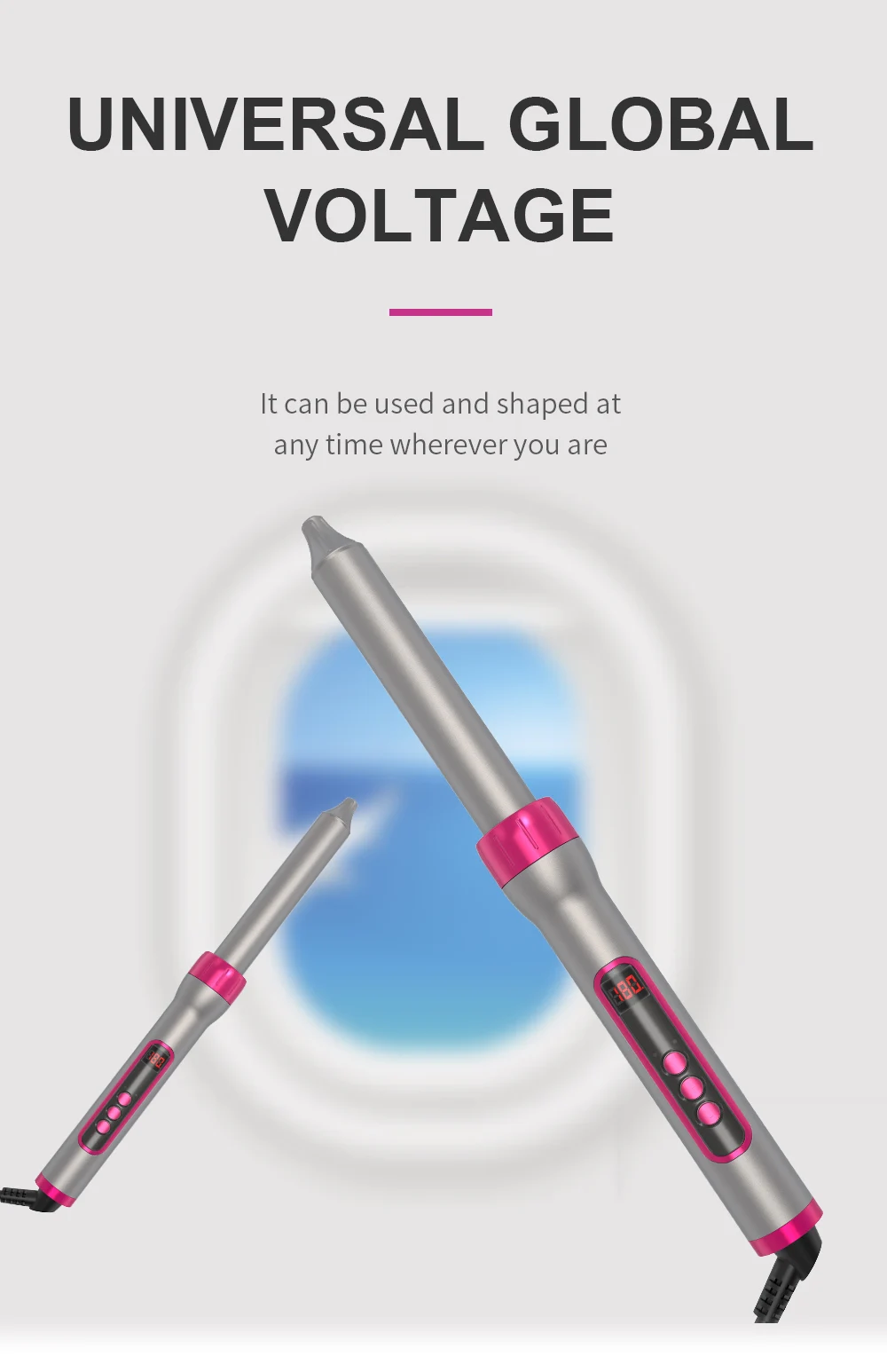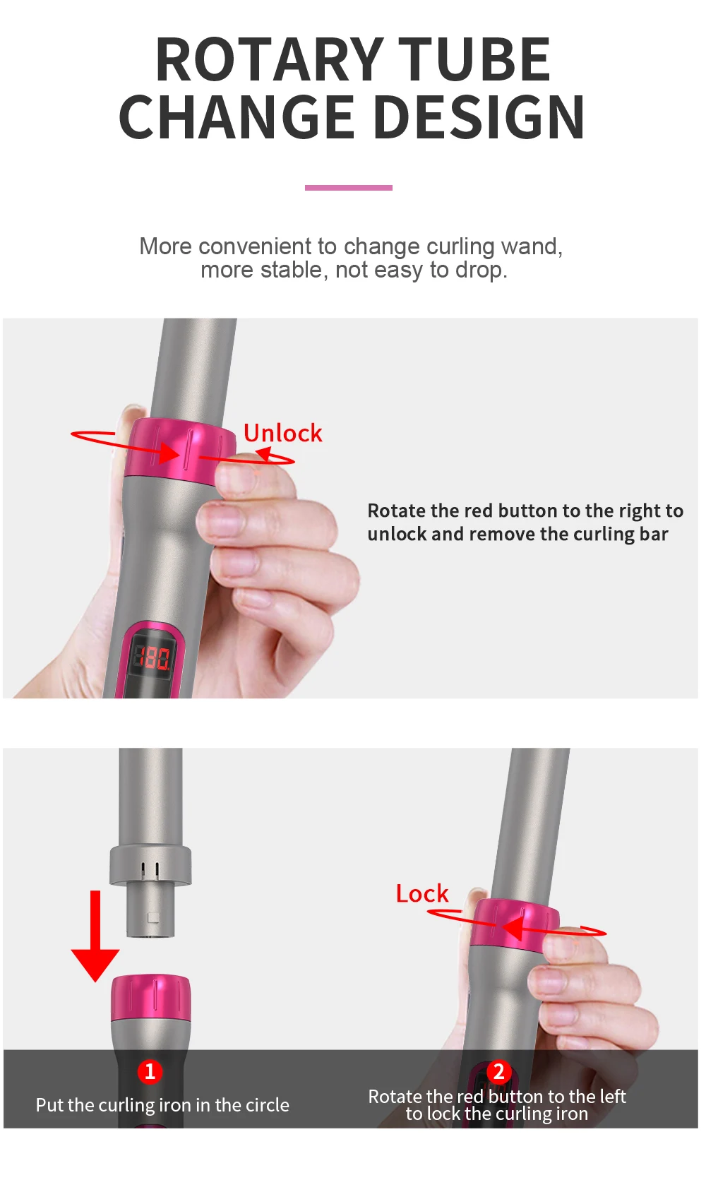 Сменные бочки с керамическим покрытием Размер: палочка для завивки оснащена 7 волшебными бочками разных форм и размеров: цилиндр 32 мм (1,26 дюйма), цилиндр 25 мм (0,98 дюйма), цилиндр 19 мм (0,75 дюйма), конический 19-25 мм (0,75-0,98 дюйма), конический 25-32 мм (0,98-1,26 дюйма), бусина 25 мм (0,98 дюйма), спираль 32 мм (1,26 дюйма)